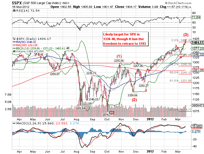 Will these wave counts play out? Or, will the more bullish alternative counts that imply an SPX price of 1440ish before a meaningful pullback? Time will tell. Best of luck to all, more to come.
